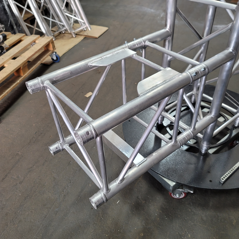 Опорный стол RS-CT-02 выполнен на базе коннекторной фермы RS-TC-Q40L050. В конфигурацию добавлена поддерживающая полка для лебедки.