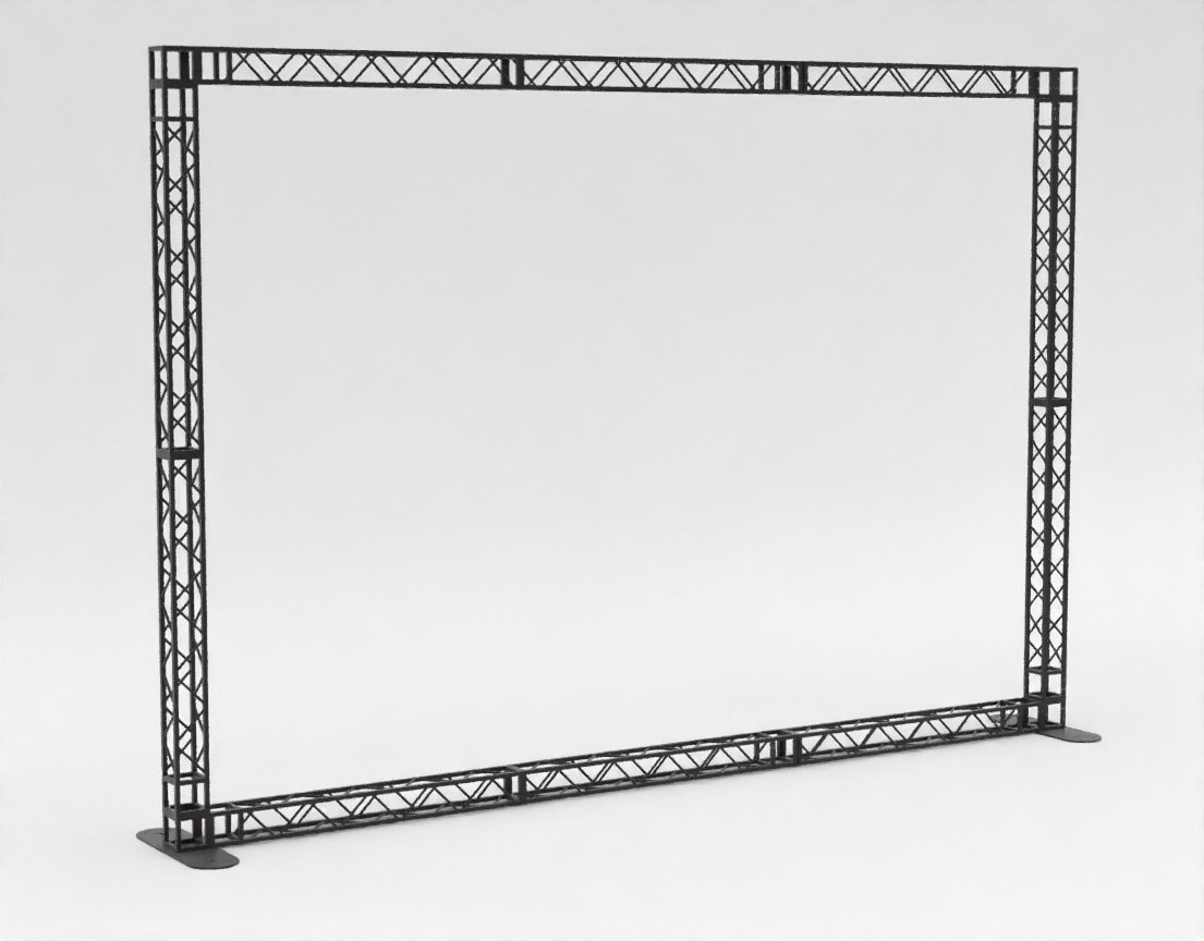 Самая высокая и широкая отдельно стоящая конструкция в серии. С полезной внутренней площадью 6000 х 4000 мм, эта рама превращается в полноценную медиа-стену или массивную декорацию. Несмотря на свои колоссальные размеры, она сохраняет ключевое преимущество серии — возможность быстрой сборки из унифицированных модулей без использования тяжелой подъемной техники.