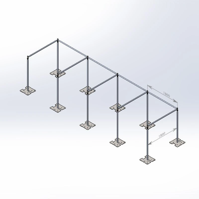 Система основывается на использовании регулируемых телескопических вертикальных стойек, поддерживаемых стальными основаниями, и регулируемыми телескопическими или фиксированными горизонтальными ригилями, которые образуют раму для для тканевой драпировки.