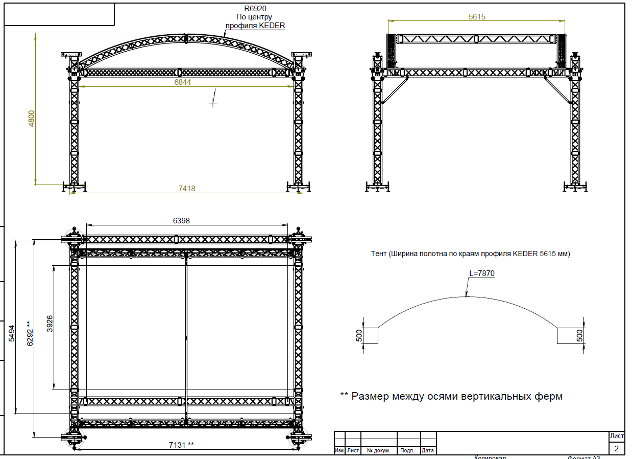 Арочная крыша подъемная на каретках для дюймового подиума 6,2х4,1 м из ферм на коннекторах