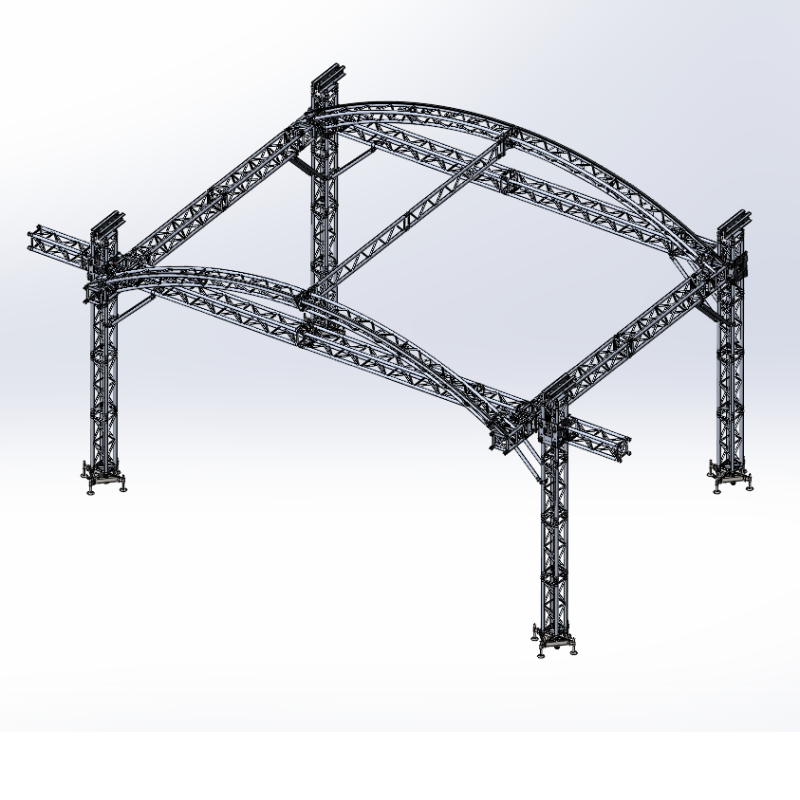 Сценический комплекс выполнен из алюминиевых ферм квадратного и треугольного сечения типа Q30 и T30, с коннекторным соединением.